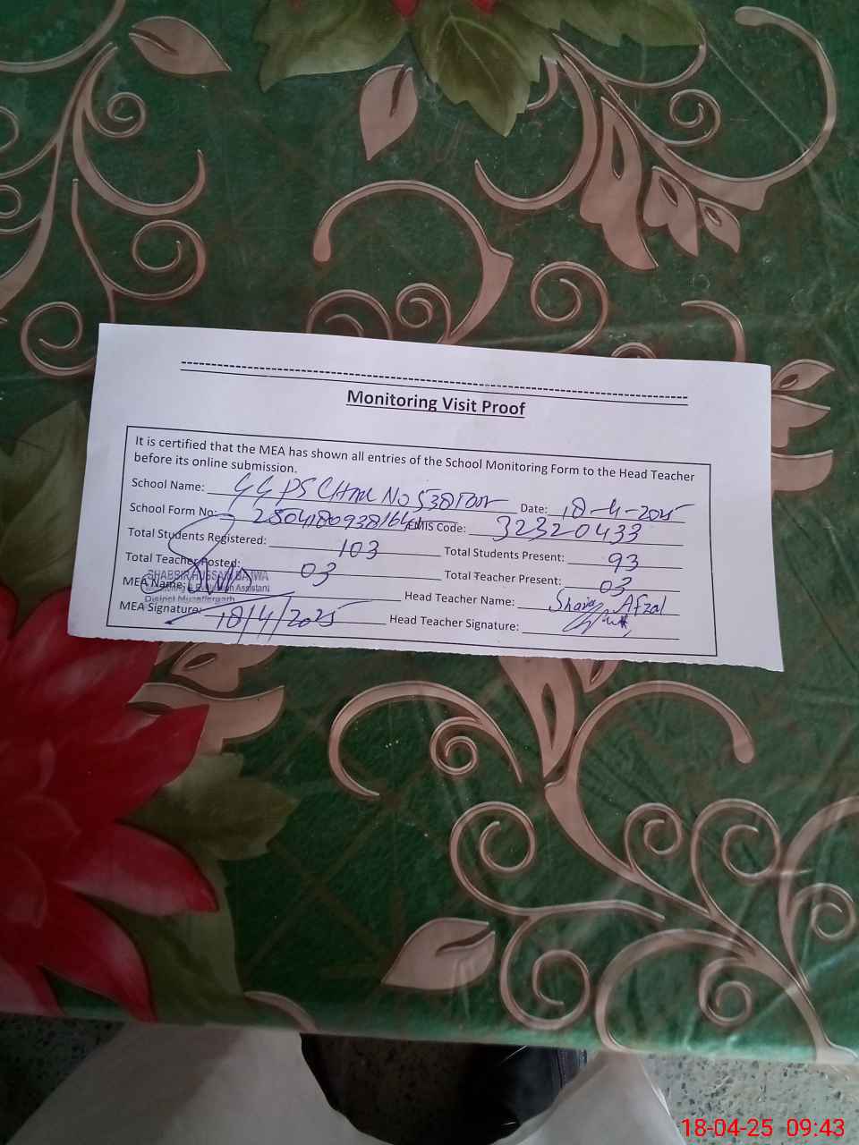 | EMIS Code: 32320433 | Name of School: GGPS CHAK NO. 538 TDA | |||