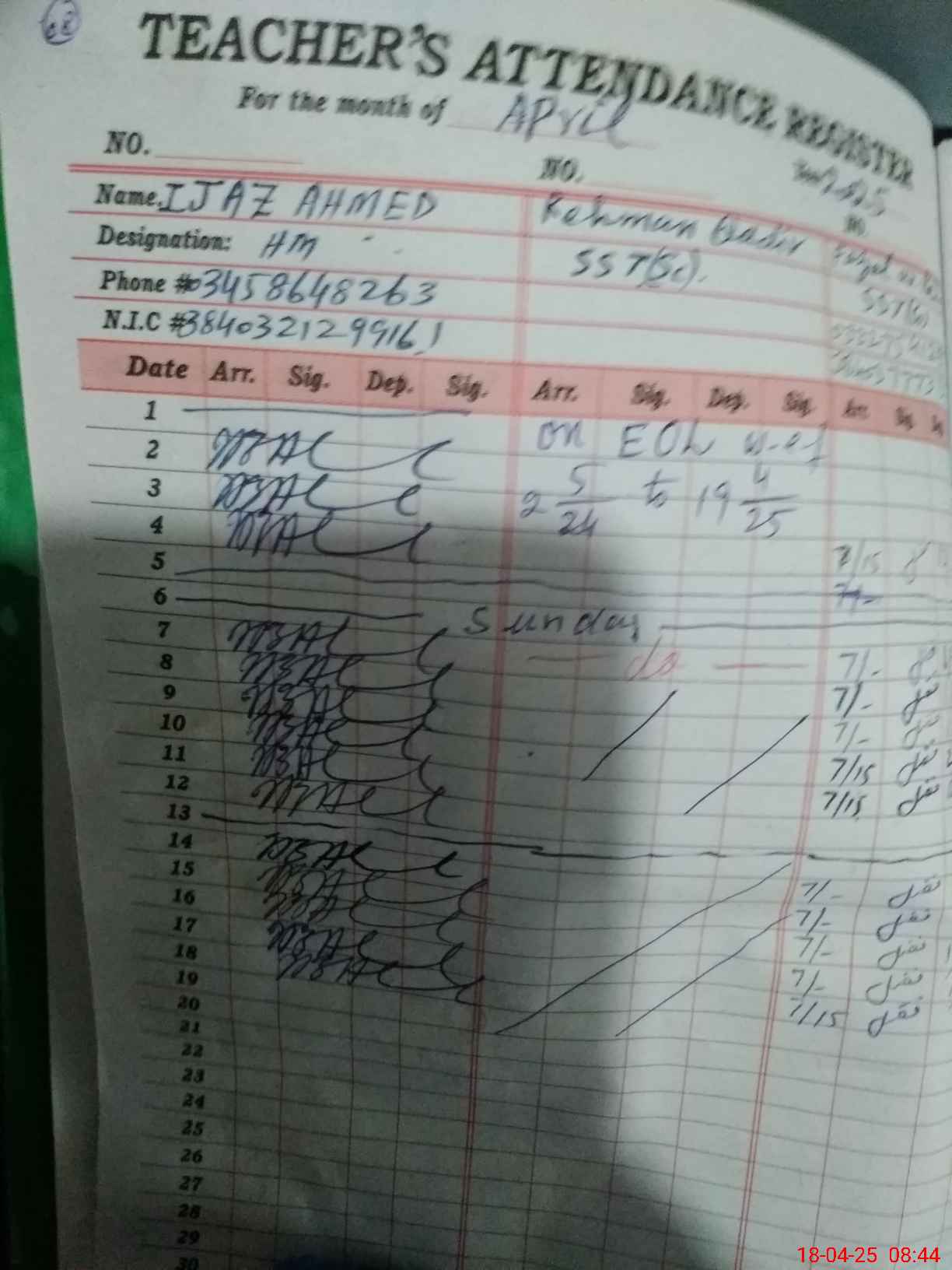 | Name: IJ**** AH**** CH**** Designation: (School Headmaster's/Headmistress's) H M Phone/Cell Number: 03**** |