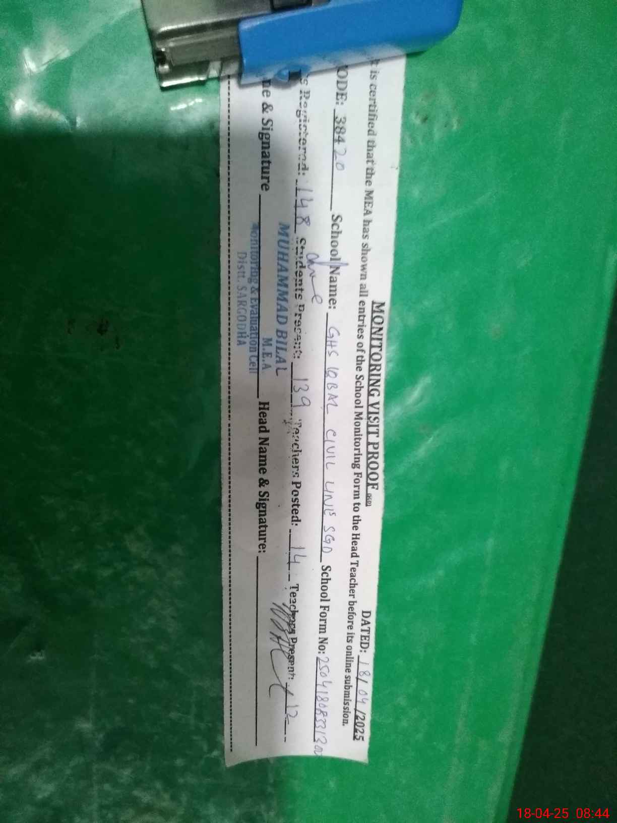 | EMIS Code: 38420030 | Name of School: GHS IQBAL NEW CIVIL LINE SARGODHA | |||