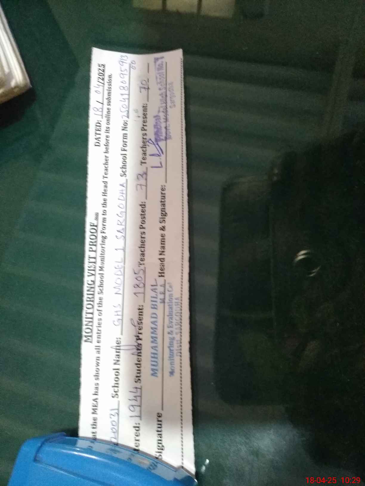 | EMIS Code: 38420031 | Name of School: GHS MODEL NO.1 SARGODHA | |||