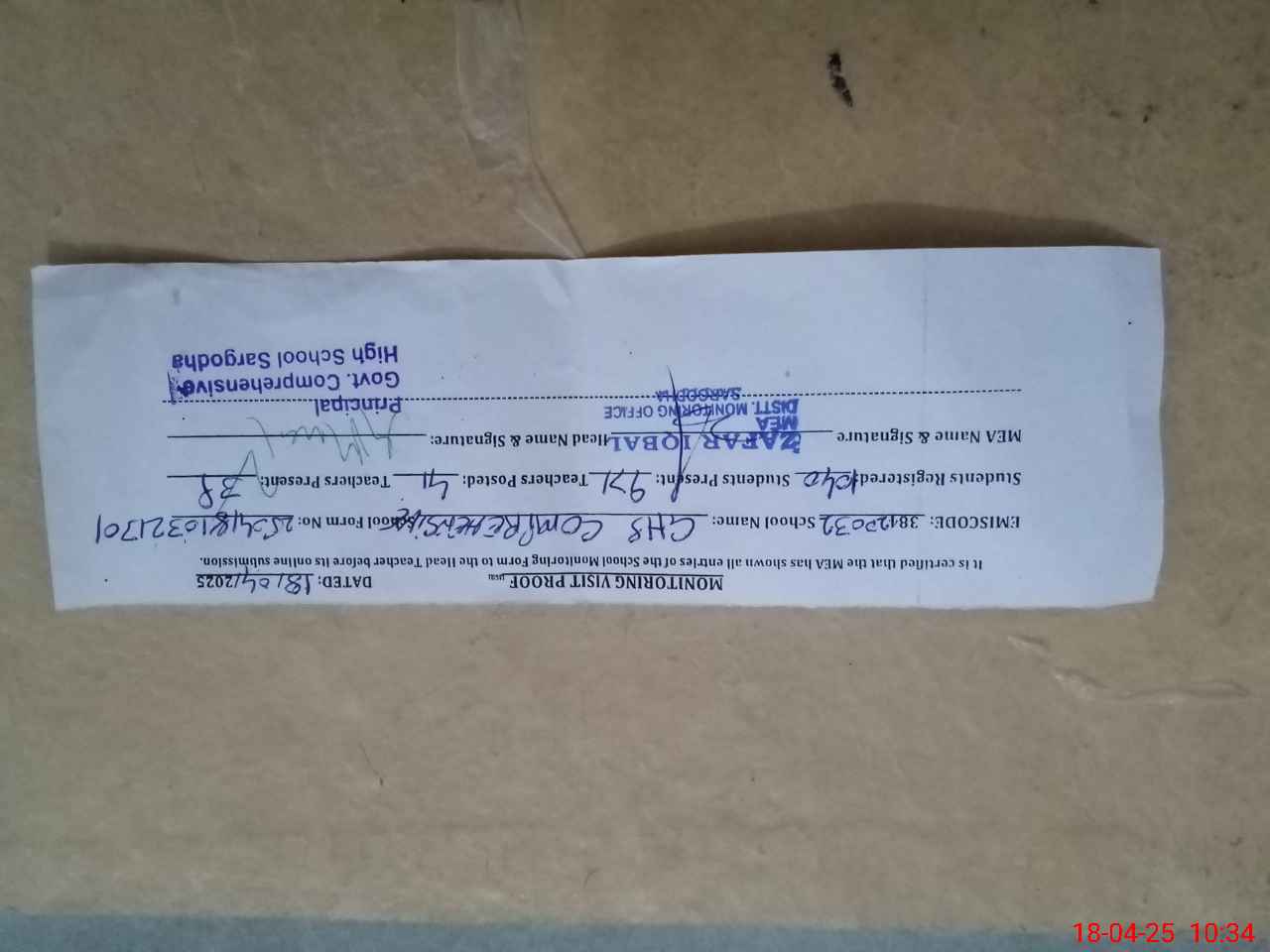 | EMIS Code: 38420032 | Name of School: GHS COMPREHENSIVE SARGODHA | |||