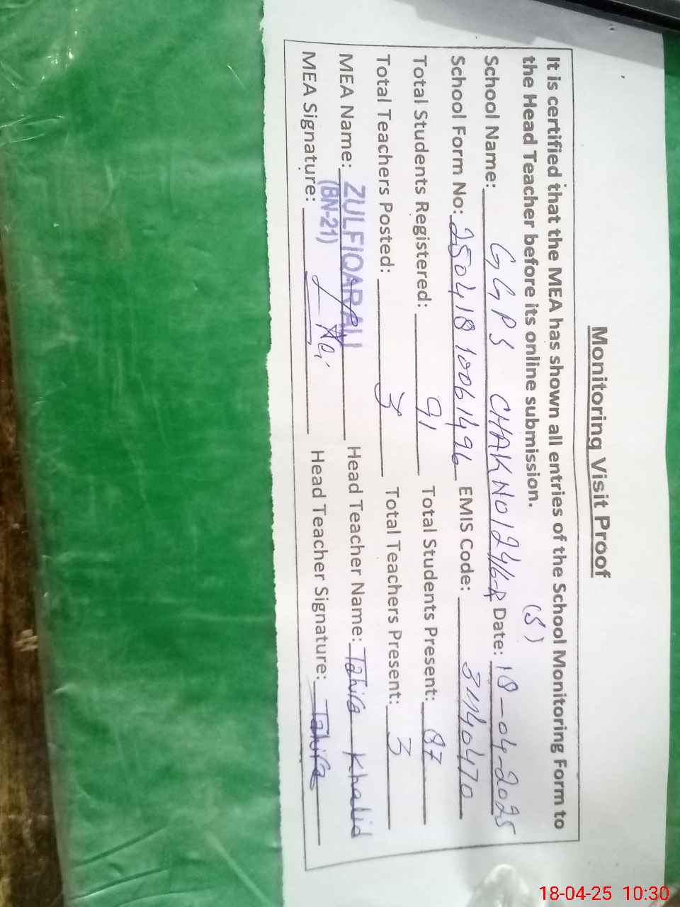 | EMIS Code: 31140470 | Name of School: GGPS CHAK NO.124/6-R | |||