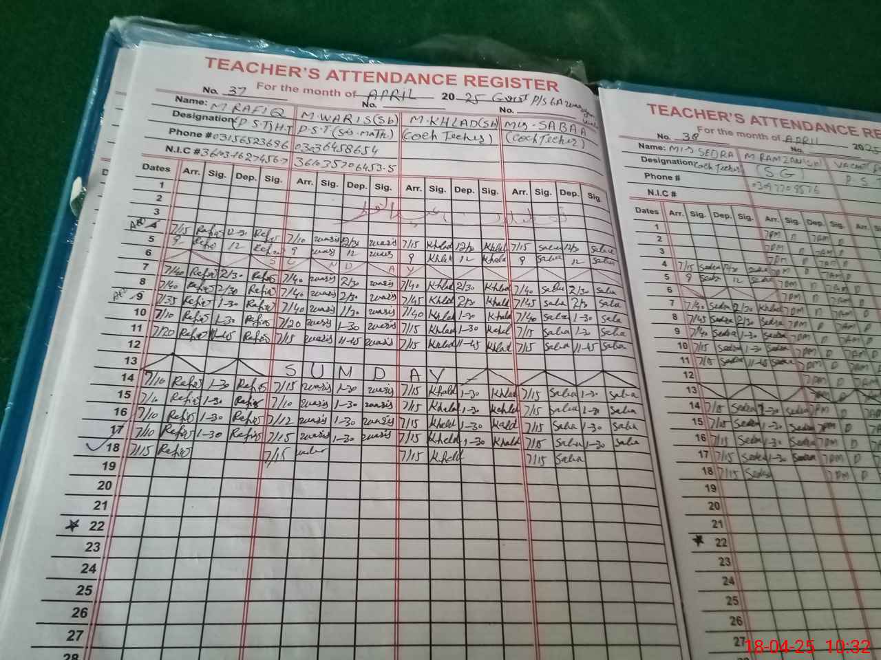| CNIC | Full Name | Designation | R/C | Absence During Last Calender Month |