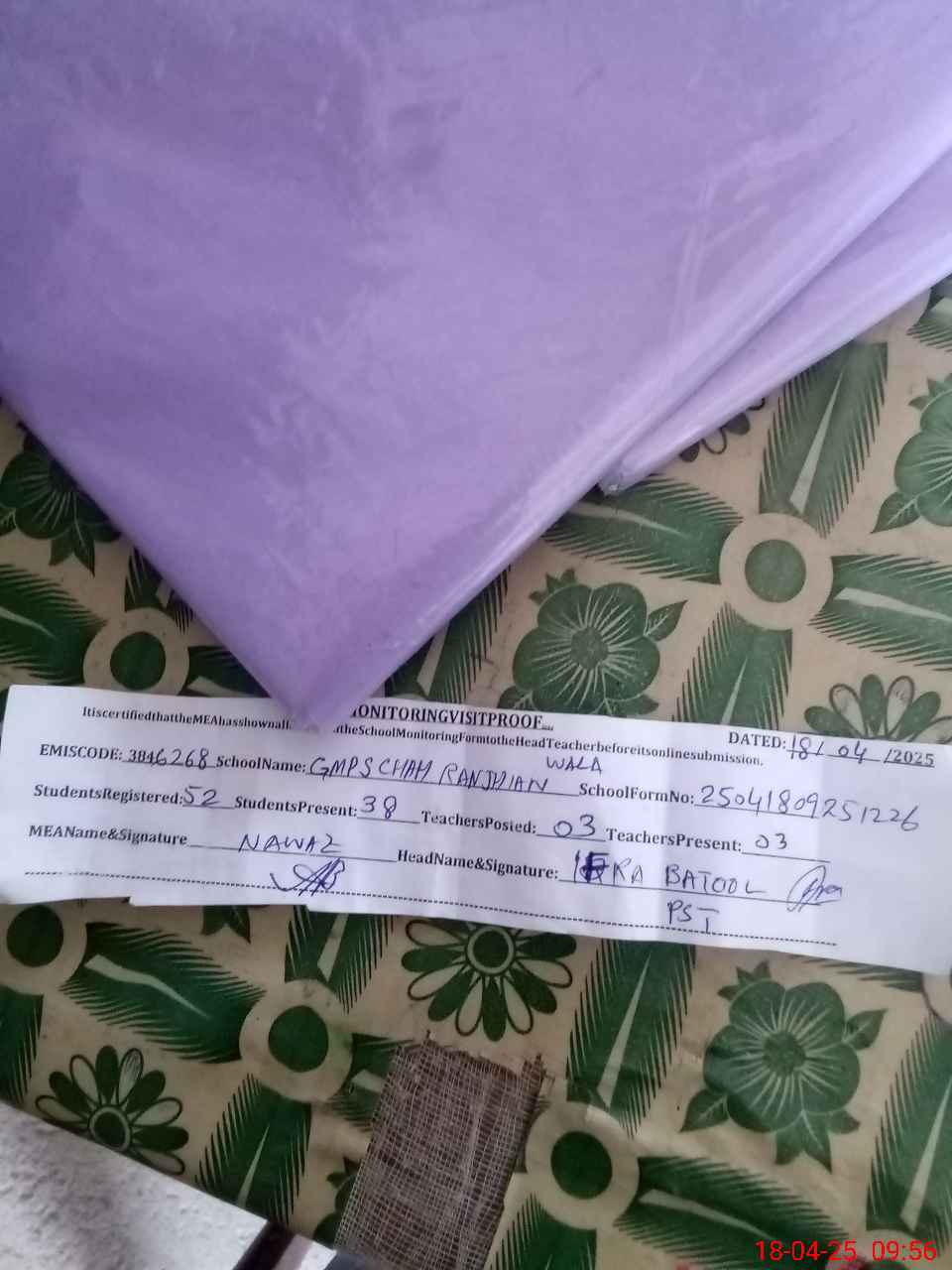 | EMIS Code: 38460268 | Name of School: GMPS CHAH RANJHIAN WALA | |||