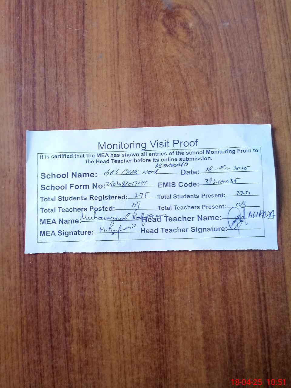 | EMIS Code: 39210035 | Name of School: GES CHAK NOOR MUHAMMAD | |||