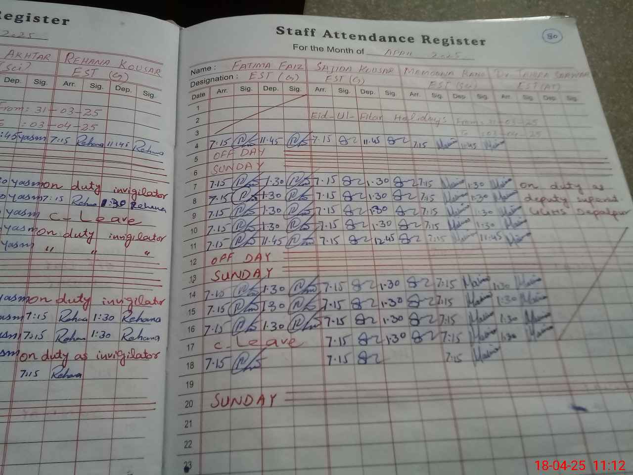 | 35**** | Ta**** Sa**** | EST | Regular | 0 | 0 | 0 | 0 | 0 | 0 | 0 | 0 | 0 | Exam Duty |