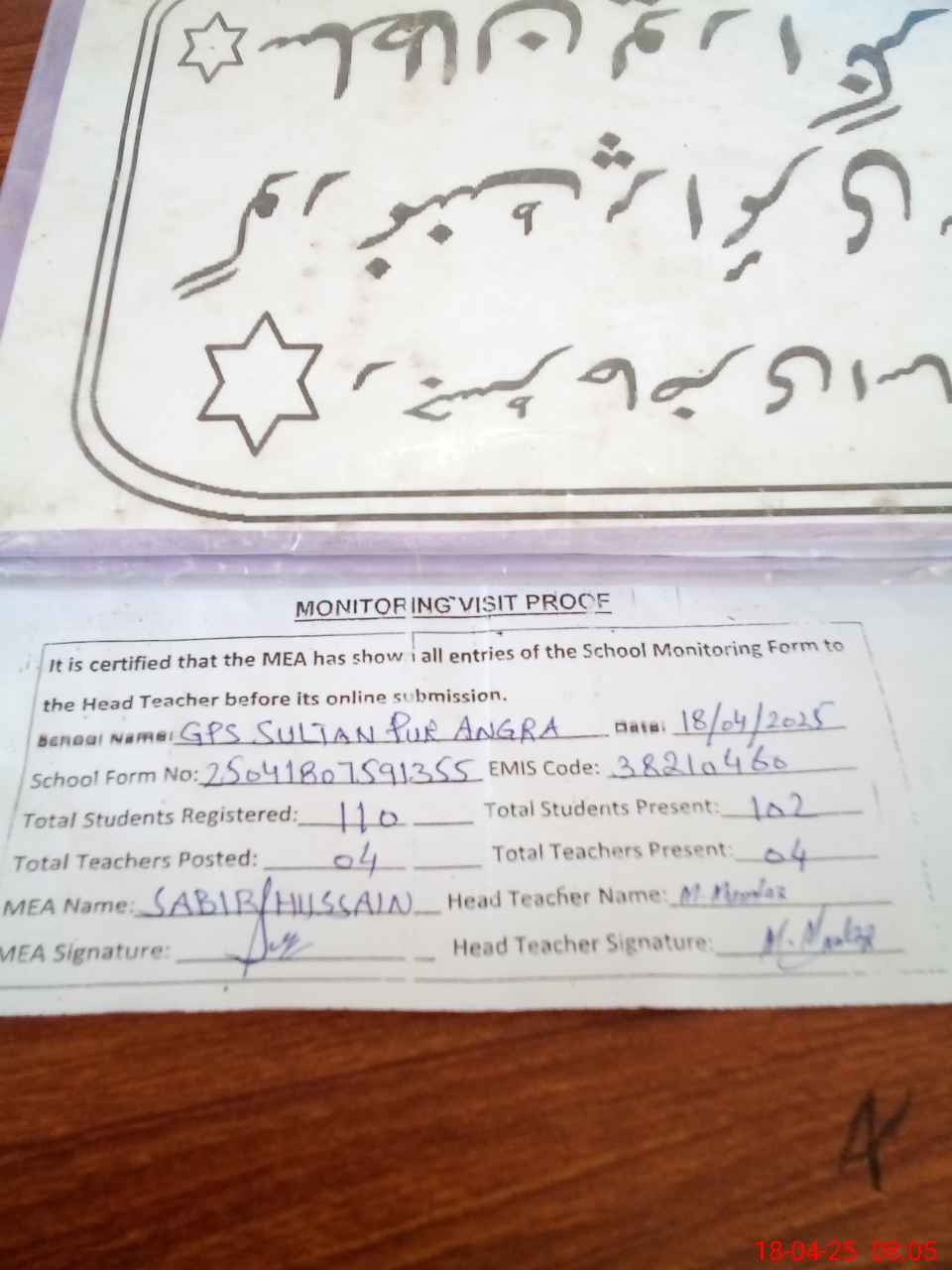 | EMIS Code: 38210460 | Name of School: GES SULTAN PUR ANGRA | |||