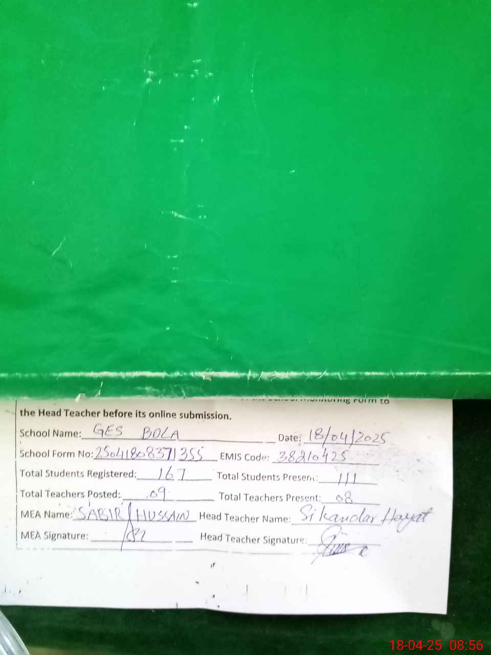 | EMIS Code: 38210425 | Name of School: GES BOLA | |||
