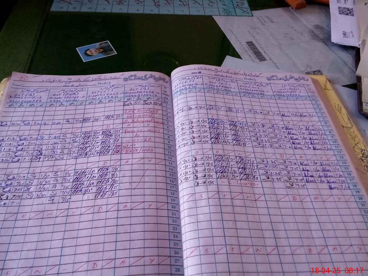 | CNIC | Full Name | Designation | R/C | Absence during last cal. month |