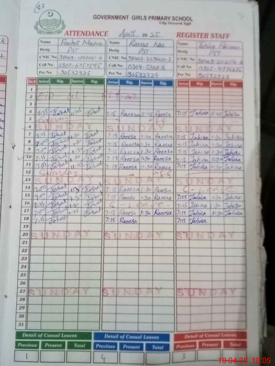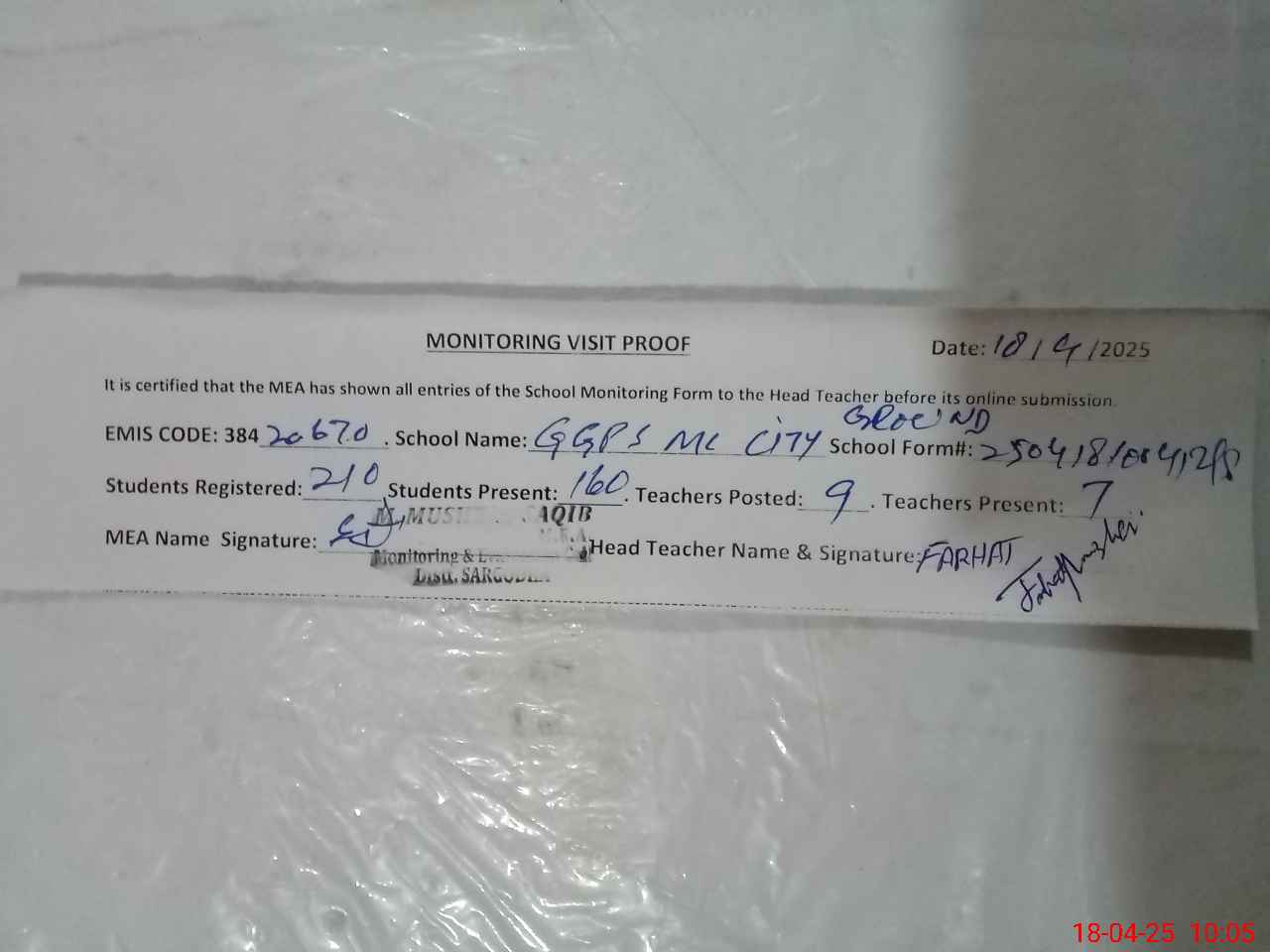| EMIS Code: 38420670 | Name of School: GGPS MC CITY GROUND SARGODHA | |||