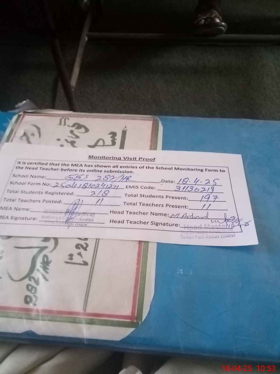 | EMIS Code: 31130219 | Name of School: GES CHAK 282 HR | |||