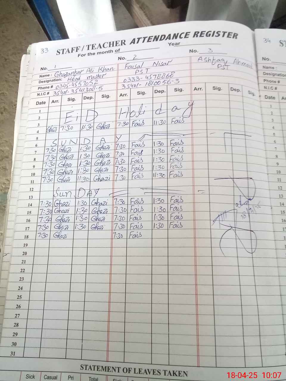 | Name: Gh**** Al**** Kh**** Designation: (School Headmaster's/Headmistress's) PST Phone/Cell Number: 03**** |
