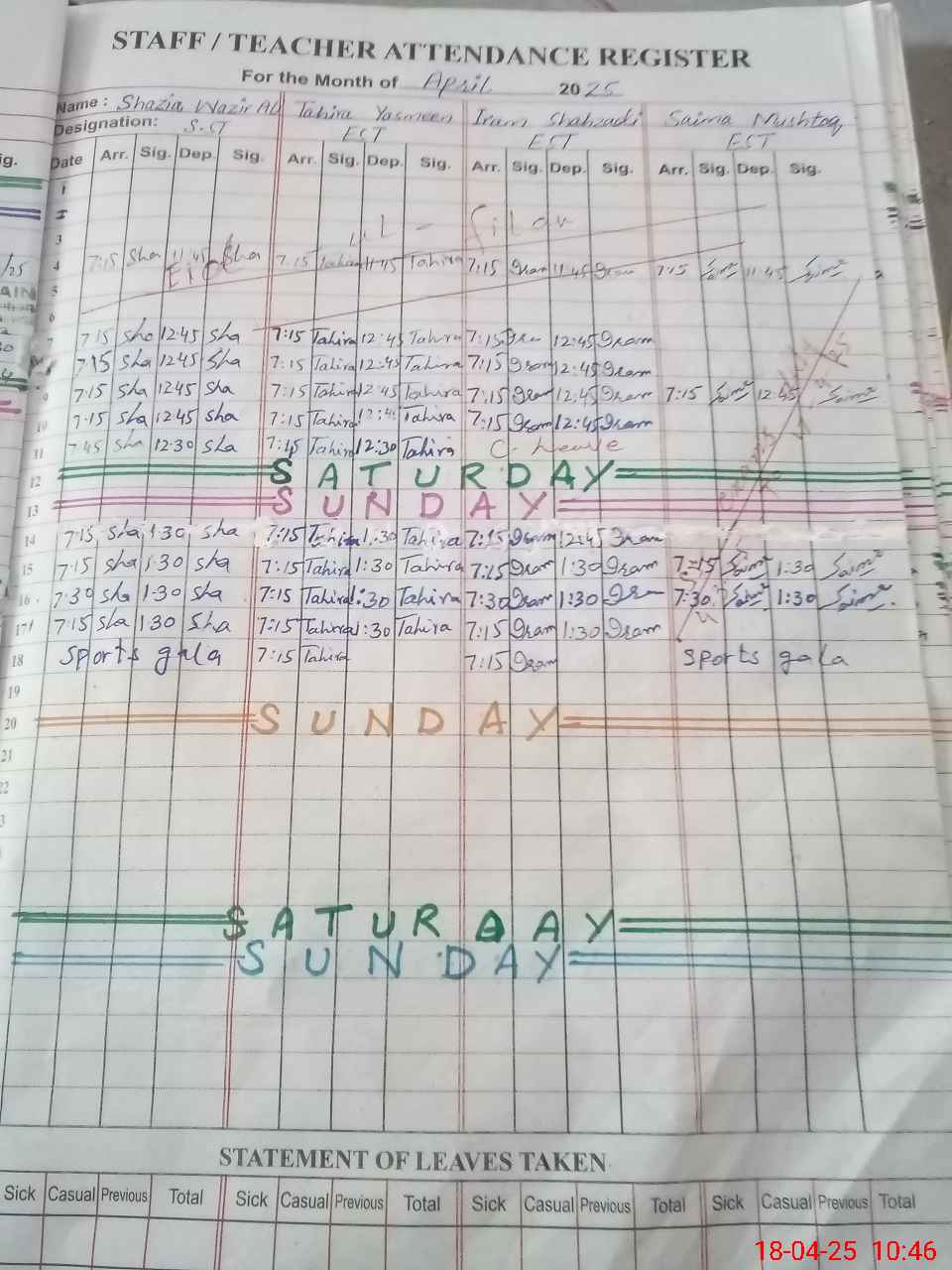 | 35**** | Sh**** Wa**** Al**** | SST | Regular | 0 | 0 | 0 | 0 | 0 | 0 | 0 | 0 | 0 | Exam Duty |