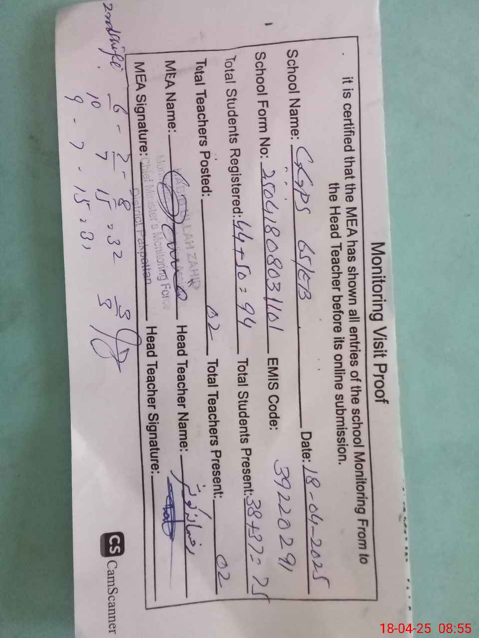 | EMIS Code: 39220291 | Name of School: GGPS 65-A/EB | |||