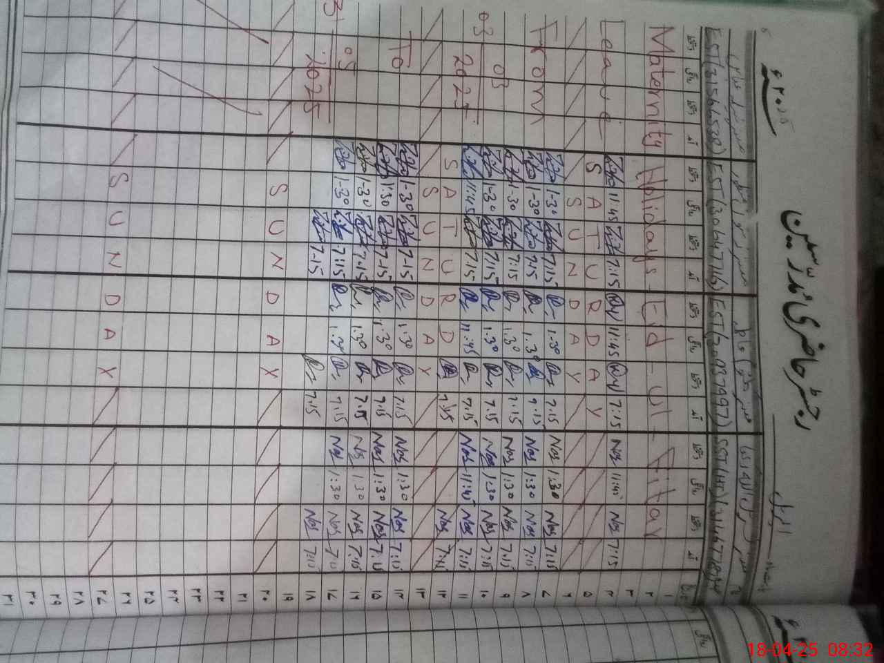 | Leave | Duty | Absent | Maternity | Medical | Ex- Pak |