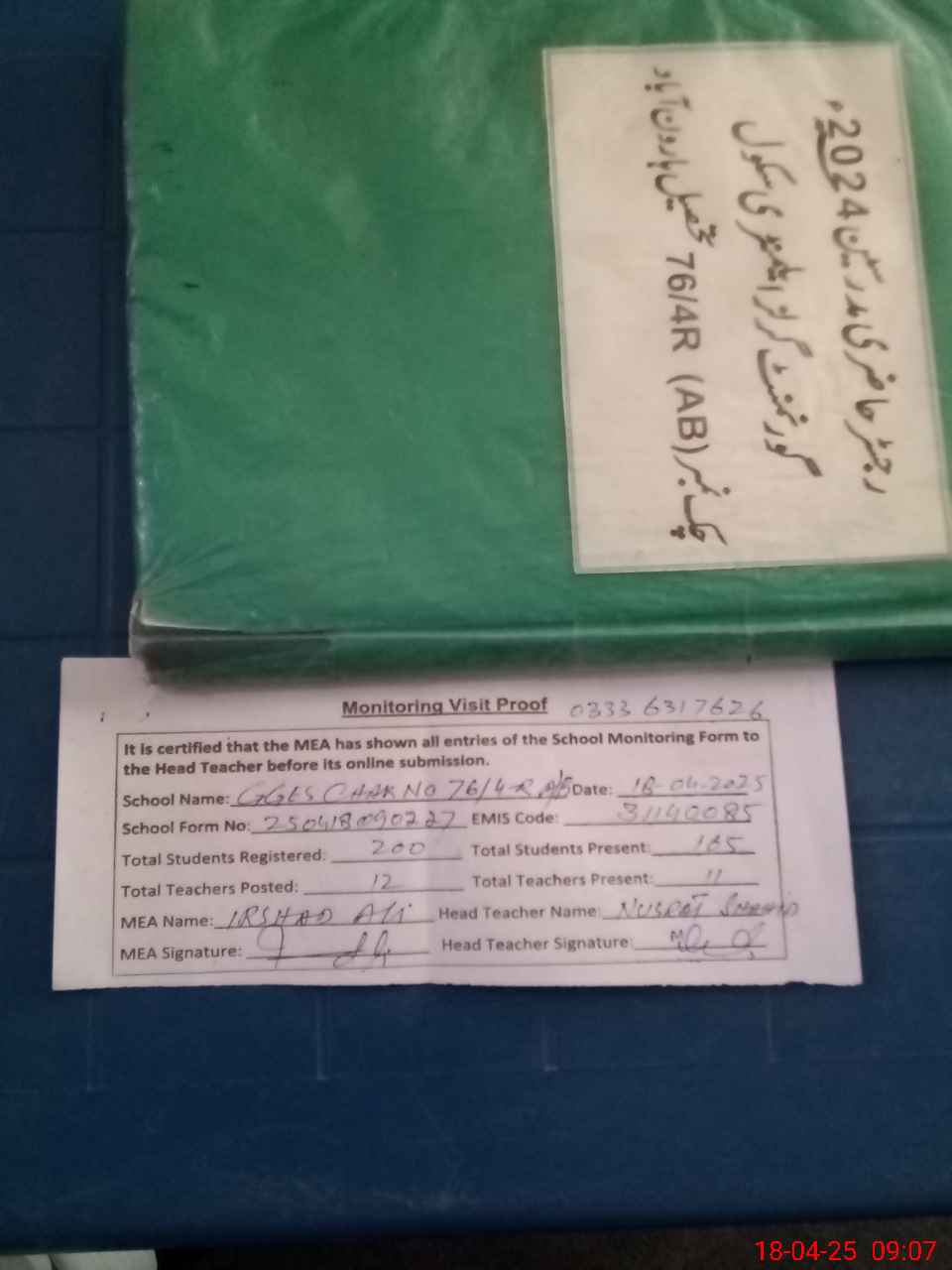 | EMIS Code: 31140085 | Name of School: GGES CHAK NO. 76/4-R AB | |||