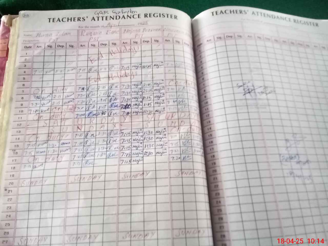 | Leave | Duty | Absent | Maternity | Medical | Ex- Pak |