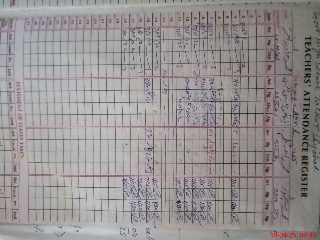 | 36**** | Mu**** Az**** | Regular | 0 | 14 | 0 | 0 | 0 | 0 | 0 | 0 | 0 | Exam Duty | |