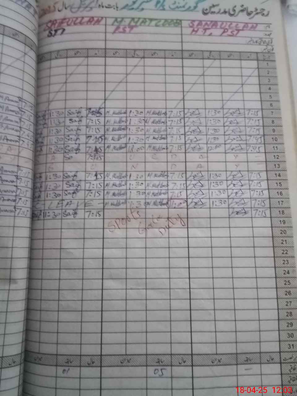 | CNIC | Full Name | Designation | R/C | Absence During Last Calender Month |