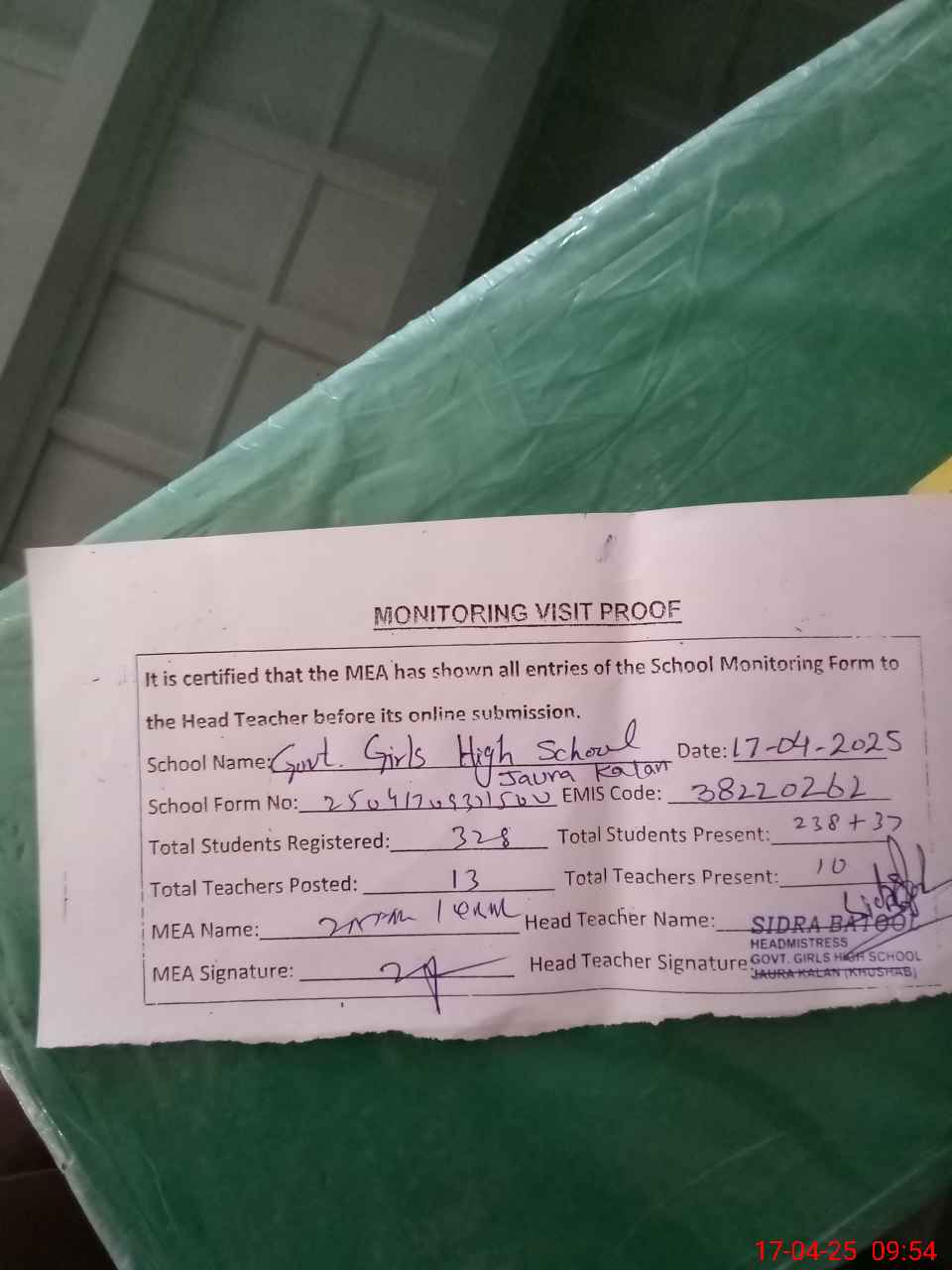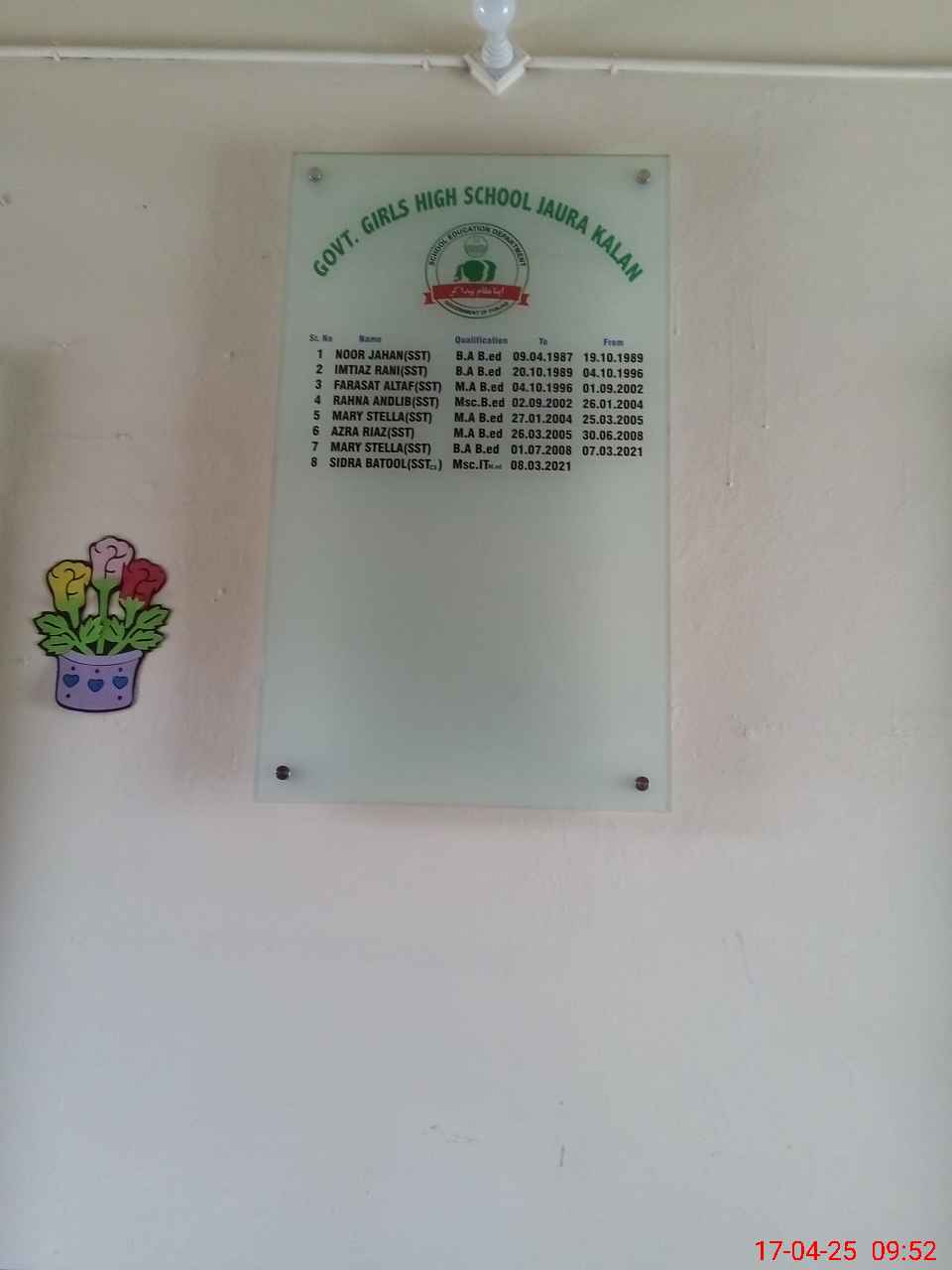 | EMIS Code: 38220262 | Name of School: GGHS JAURA KALAN | |||