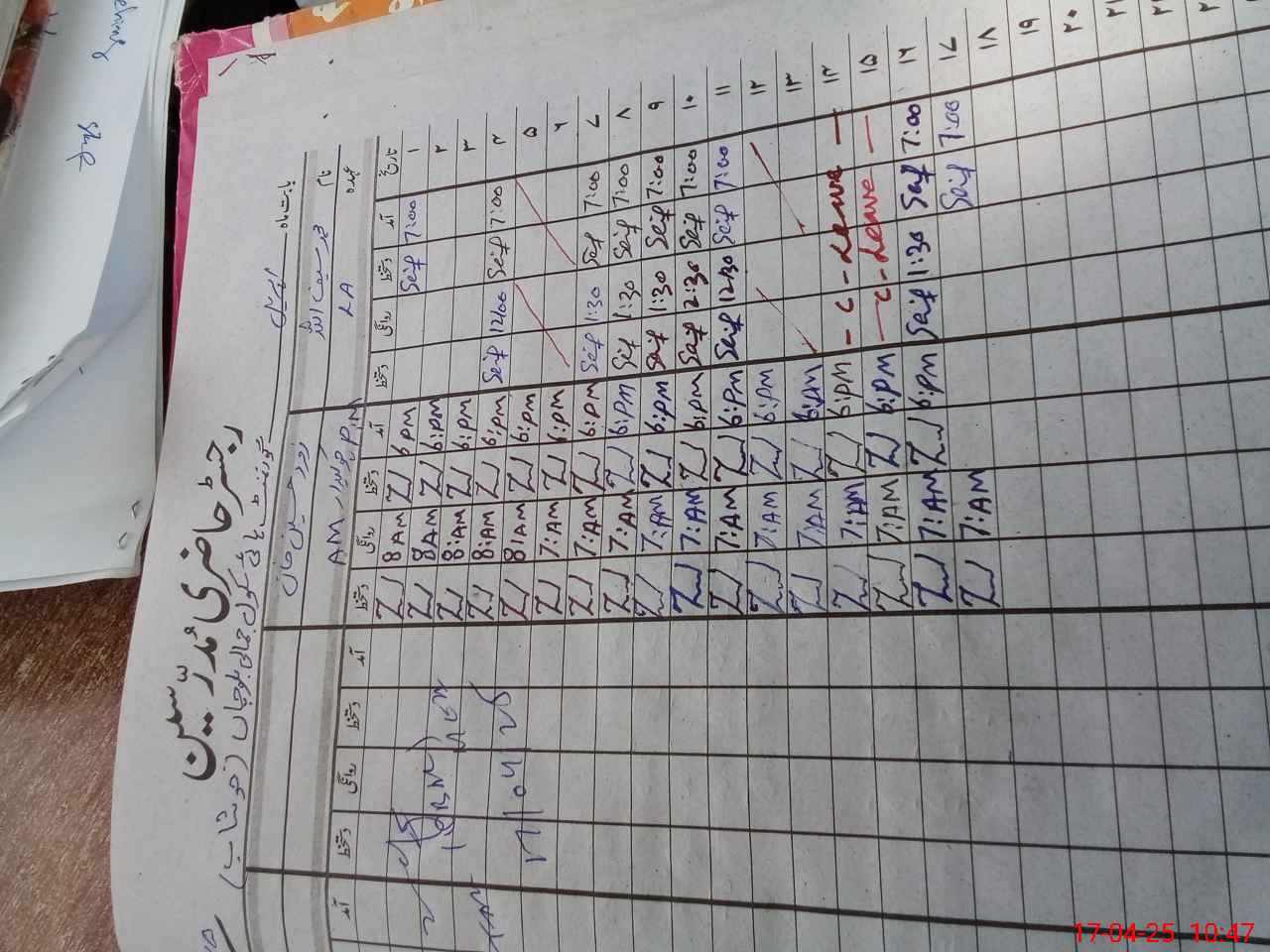 | CNIC | Full Name | Designation | R/C | Absence During Last Calender Month |