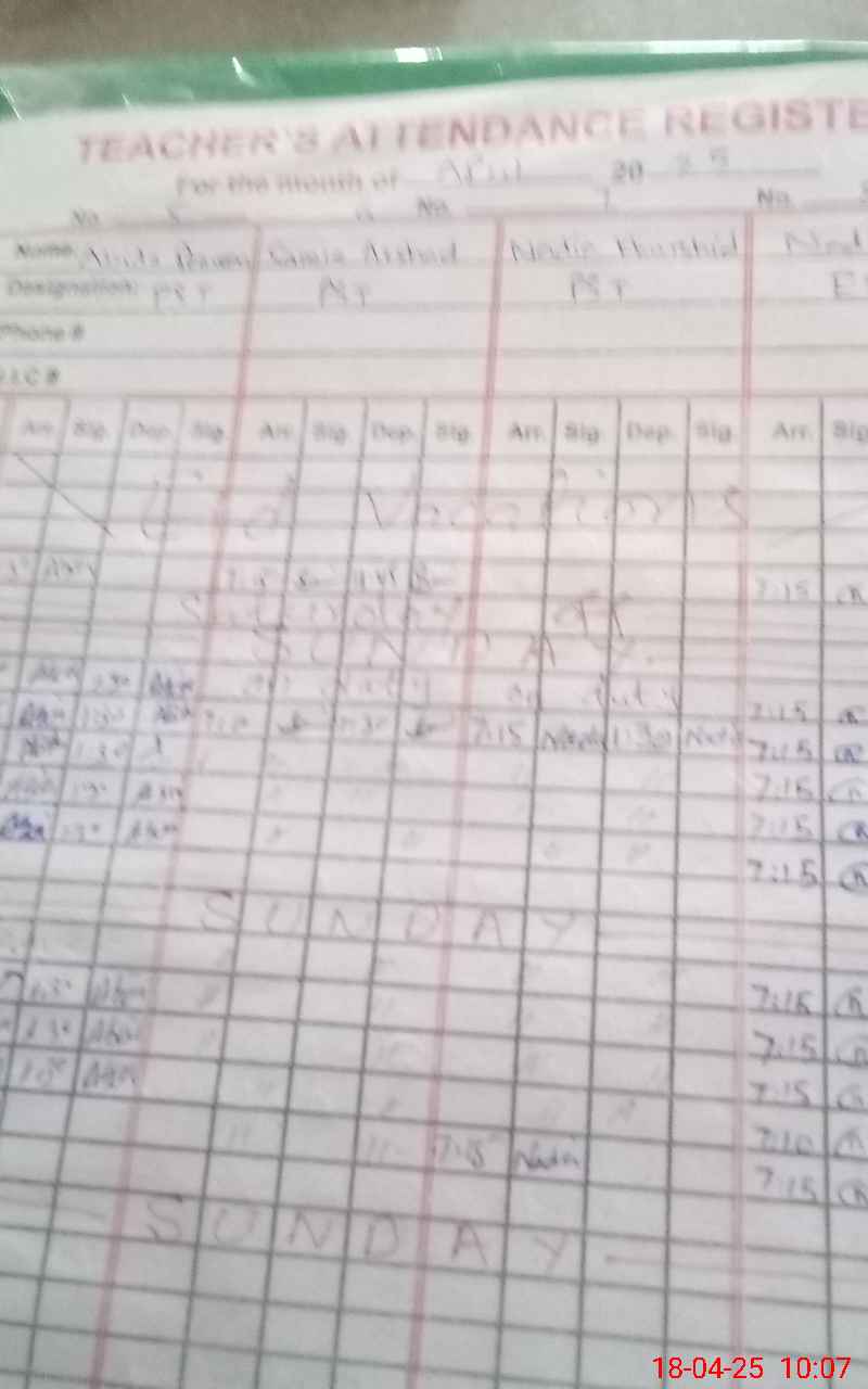 | 35**** | Sa**** Ar**** | PST | Regular | 0 | 0 | 0 | 0 | 0 | 0 | 0 | 0 | 0 | Exam Duty |