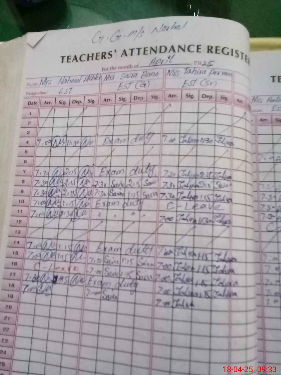 | Leave | Duty | Absent | Maternity | Medical | Ex- Pak |