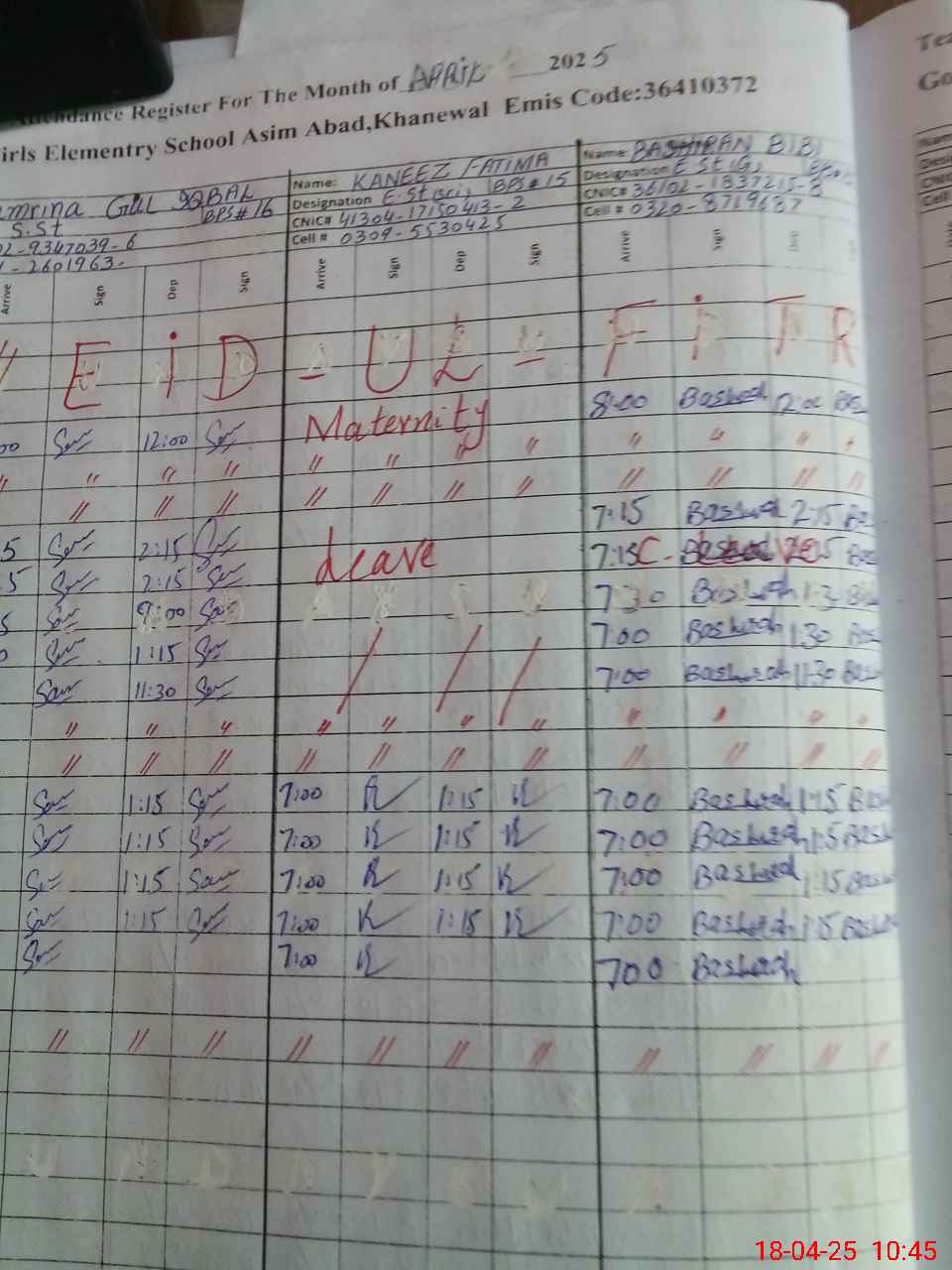 | 36**** | Sh**** Kh**** | EST | Regular | 0 | 0 | 0 | 0 | 0 | 0 | 0 | 0 | 0 | |