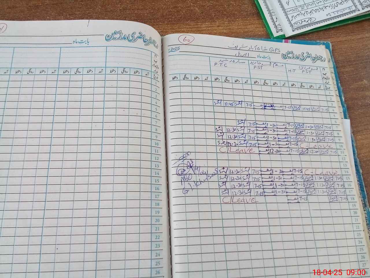 | CNIC | Full Name | Designation | R/C | Absence During Last Calender Month |
