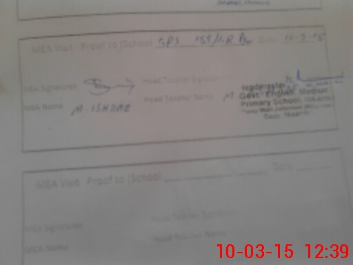 | Attendance Register | Head Teacher | MEA with School | Visit Proof |