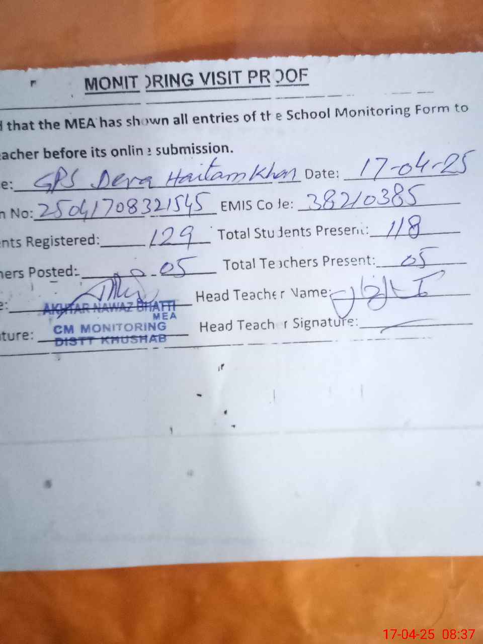 | EMIS Code: 38210385 | Name of School: GPS DERA HAITAM KHAN | |||