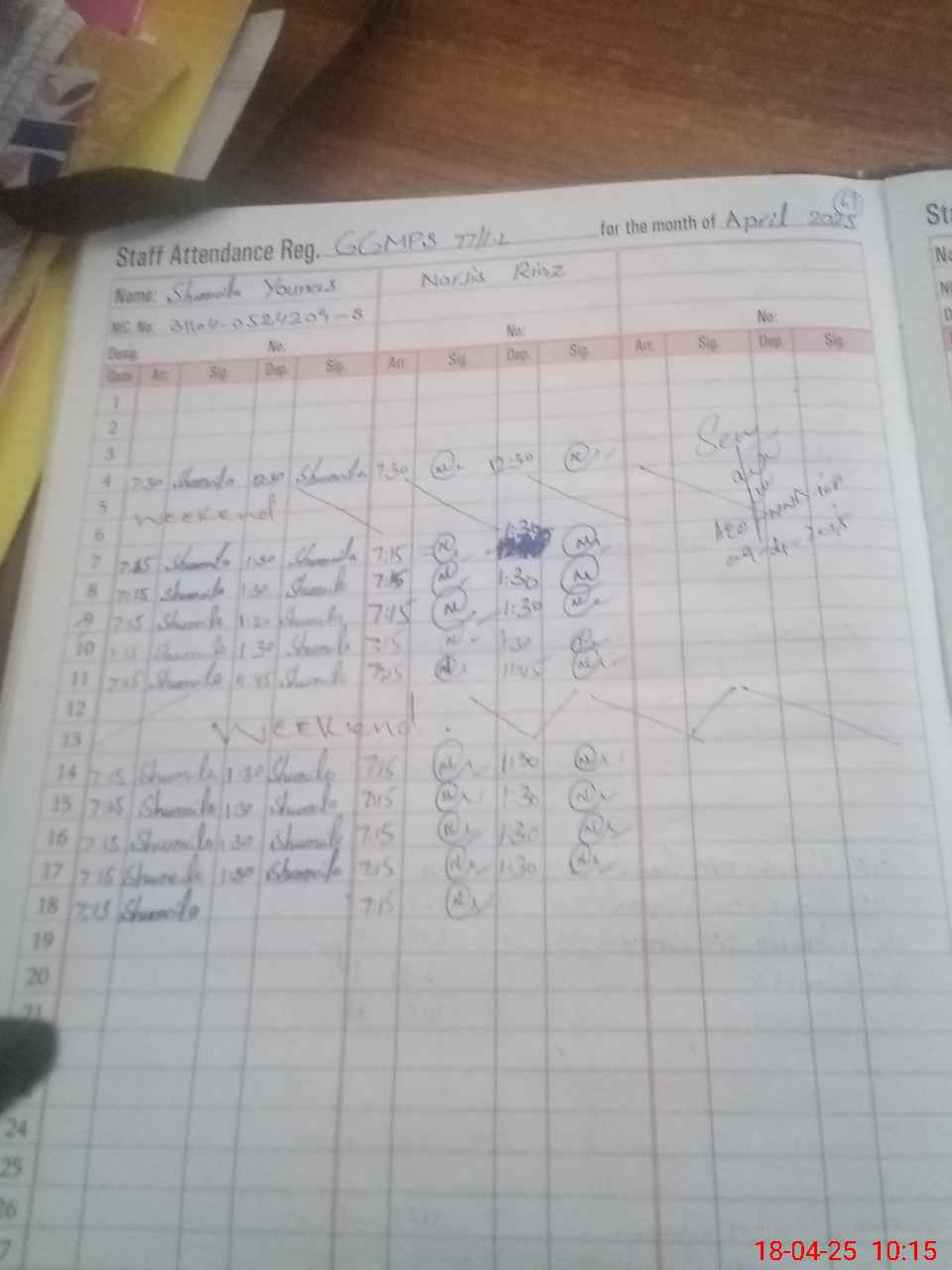 | CNIC | Full Name | Designation | R/C | Absence During Last Calender Month |
