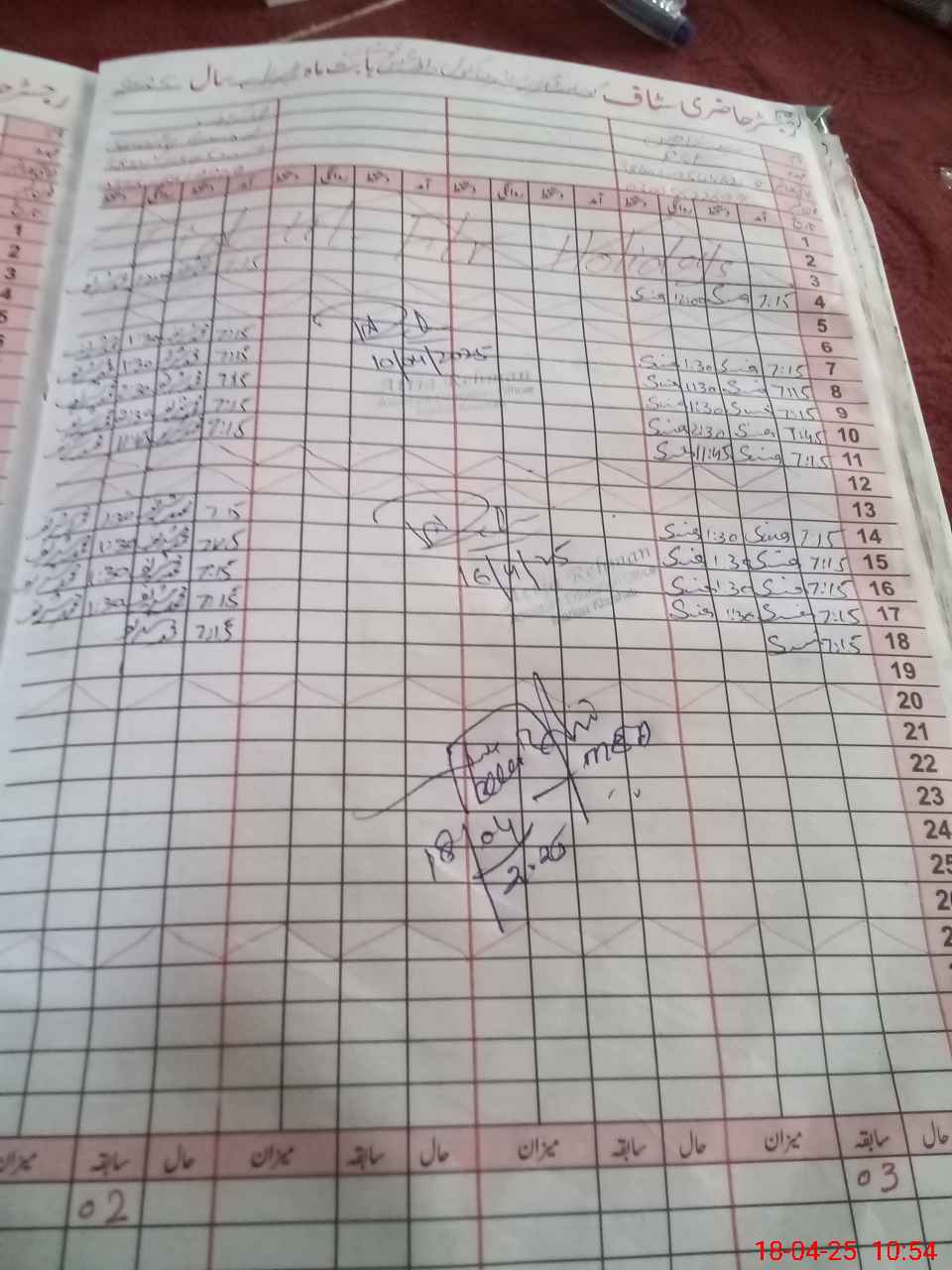 | CNIC | Full Name | Designation | R/C | Absence during last cal. month |