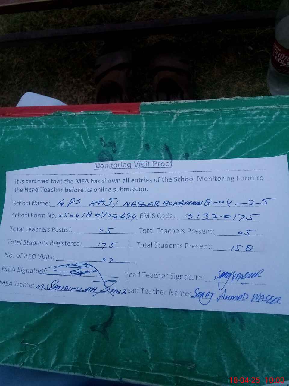 | EMIS Code: 31320175 | Name of School: GPS HAJI NAZAR MUHAMMAD | |||