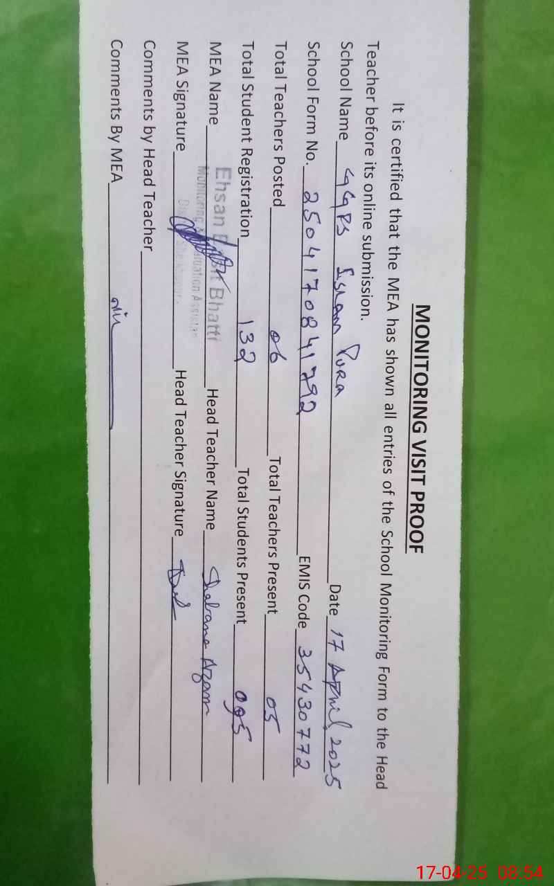 | EMIS Code: 35430772 | Name of School: GGPS ISLAM PURA | |||