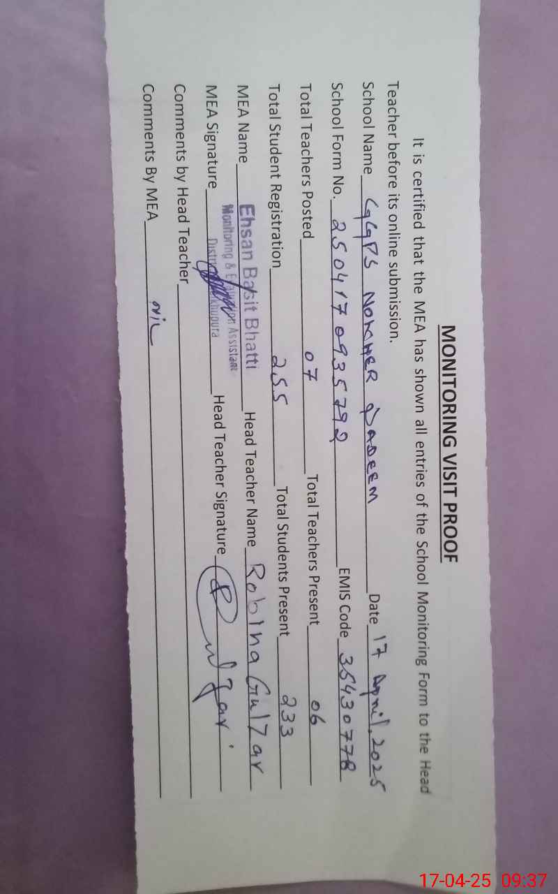 | EMIS Code: 35430778 | Name of School: GGPS NOKHER QADEEM | |||