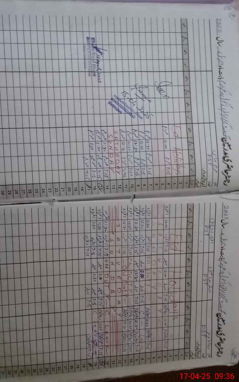 | 35**** | Ra**** Sh**** | 1 | 1 | 0 | 0 | 0 | 0 | 0 | 0 | 0 | 0 | 0 | Exam Duty |