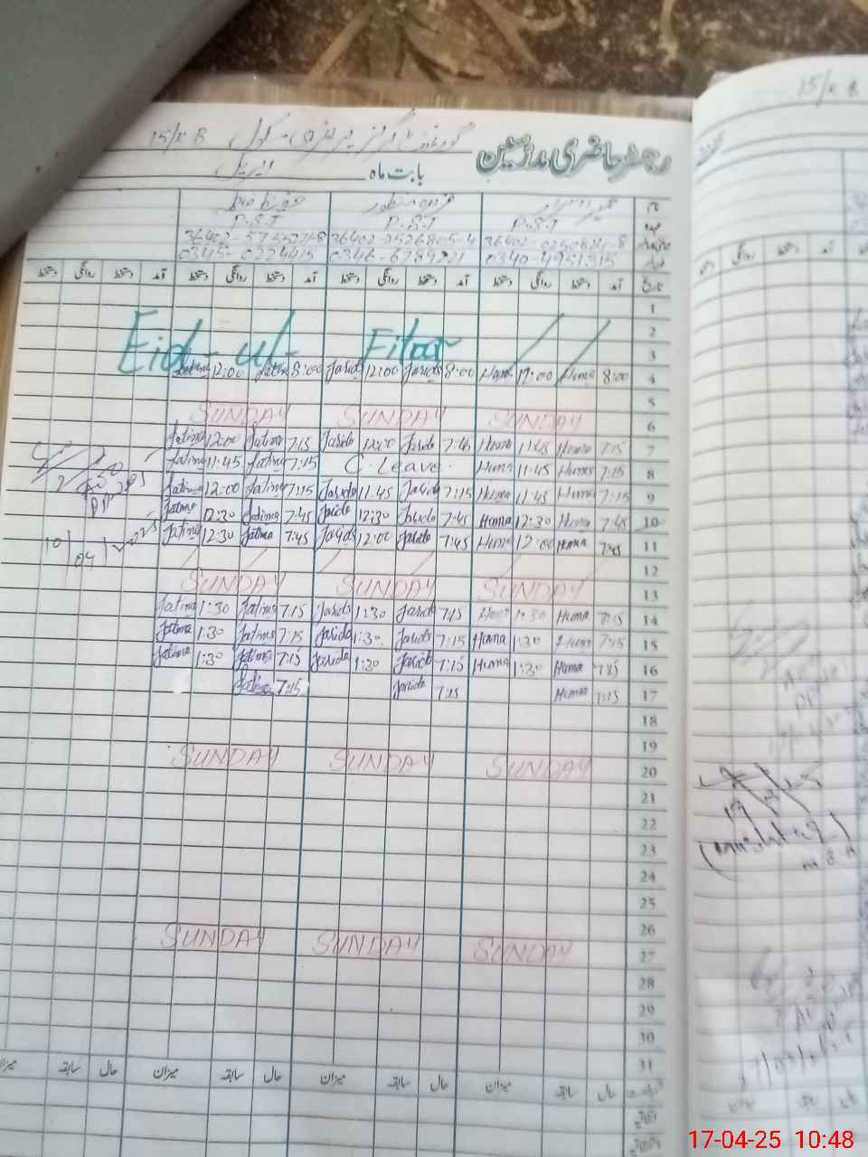 | Leave | Duty | Absent | Maternity | Medical | Ex- Pak |