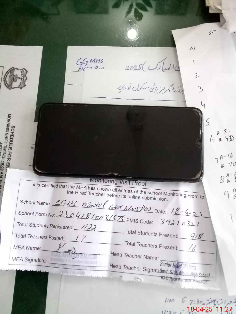 | EMIS Code: 39210321 | Name of School: GGHS MODEL ADDA NOOR PUR | |||