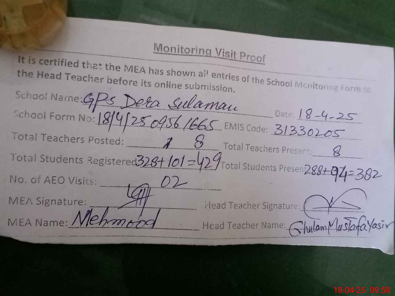 | EMIS Code: 31330205 | Name of School: GPS DERA SULEMAN | |||