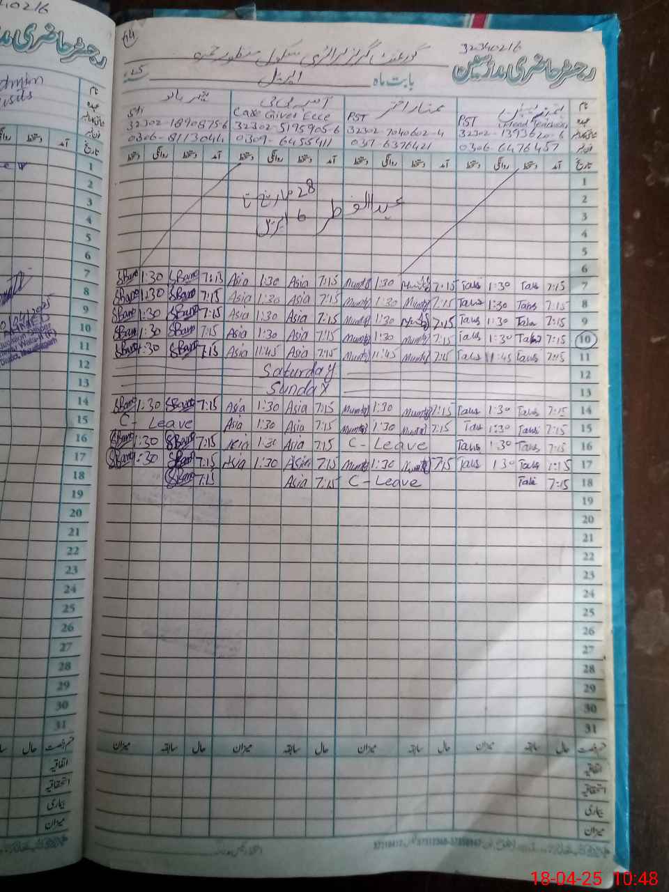| Leave | Duty | Absent | Maternity | Medical | Ex- Pak |