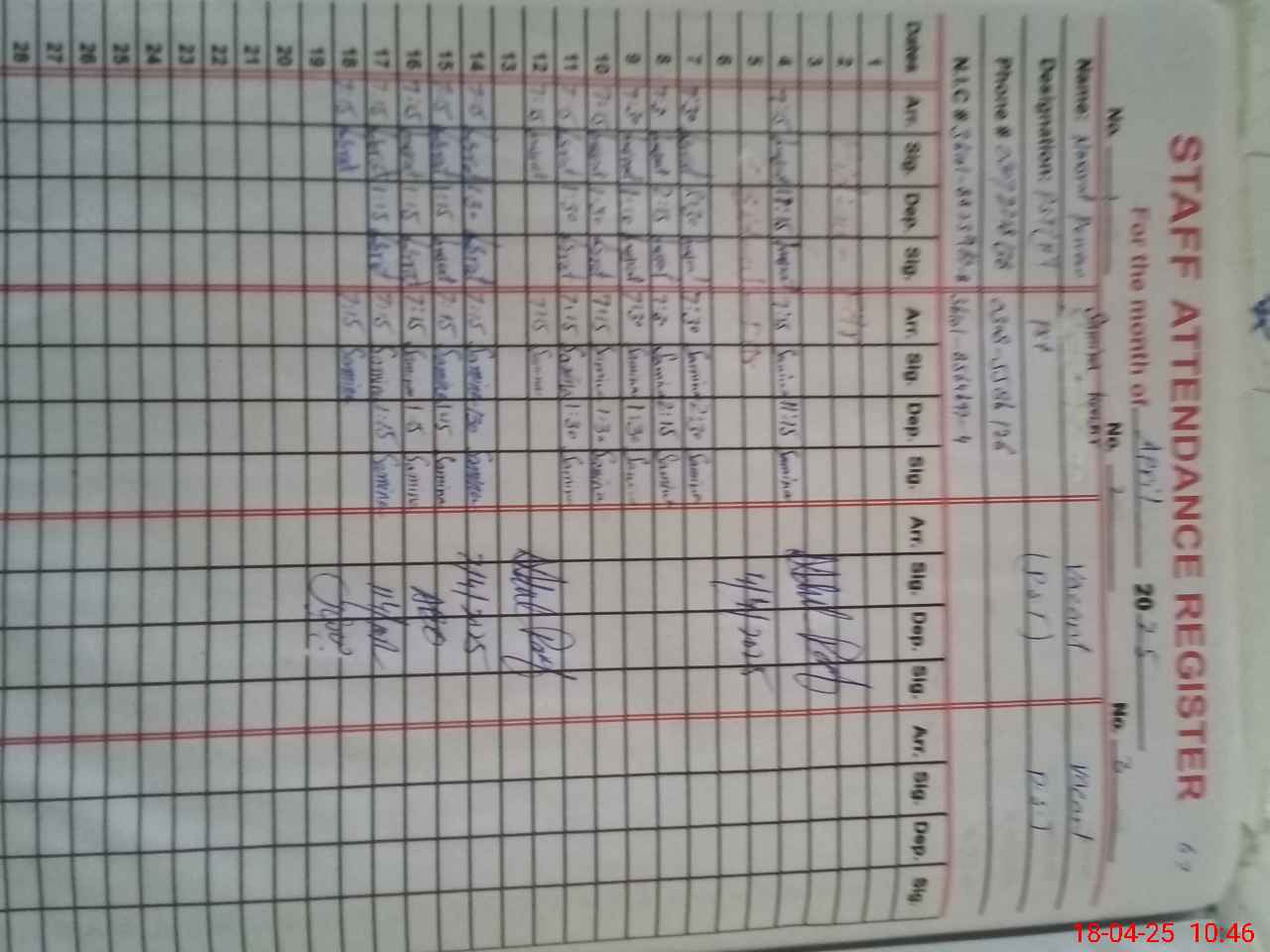 | Name: NU**** PA**** Designation: (School Headmaster's/Headmistress's) PST Phone/Cell Number: 03**** |