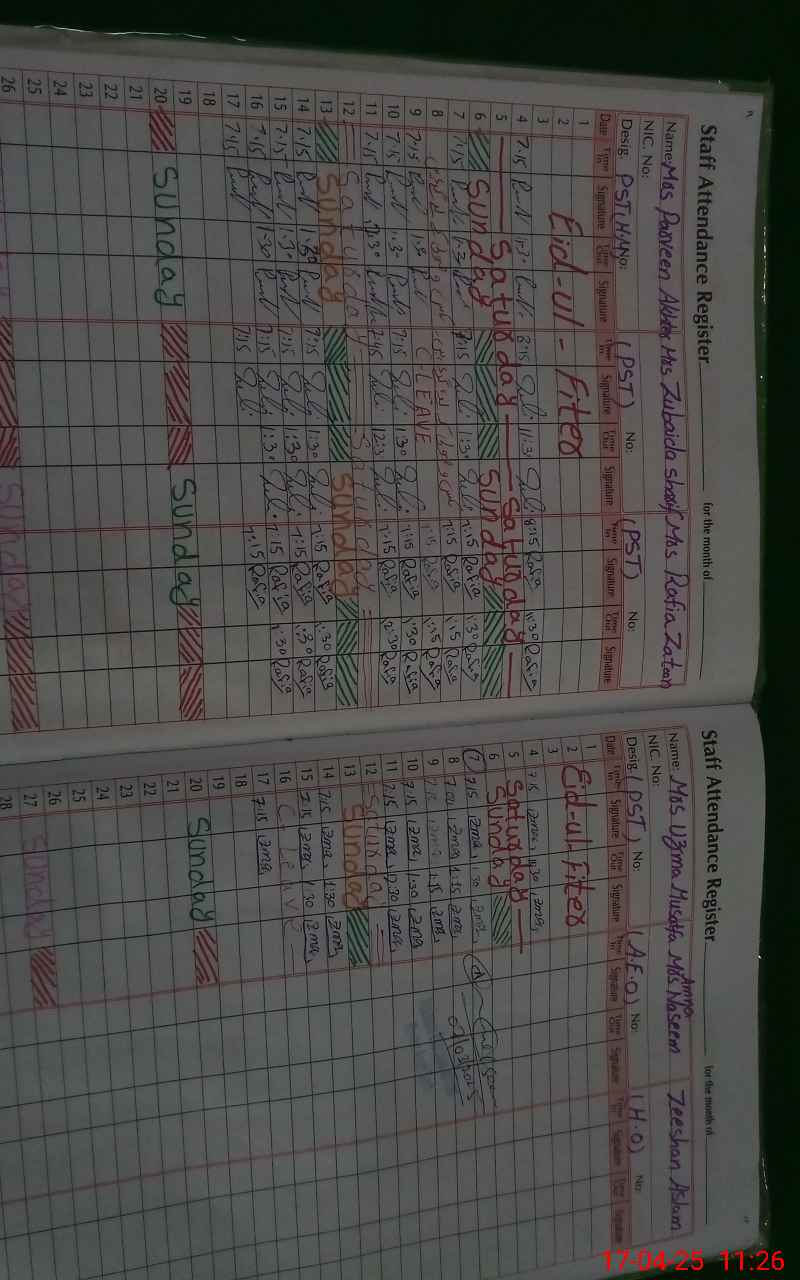 | CNIC | Full Name | Designation | R/C | Absence During Last Calender Month |