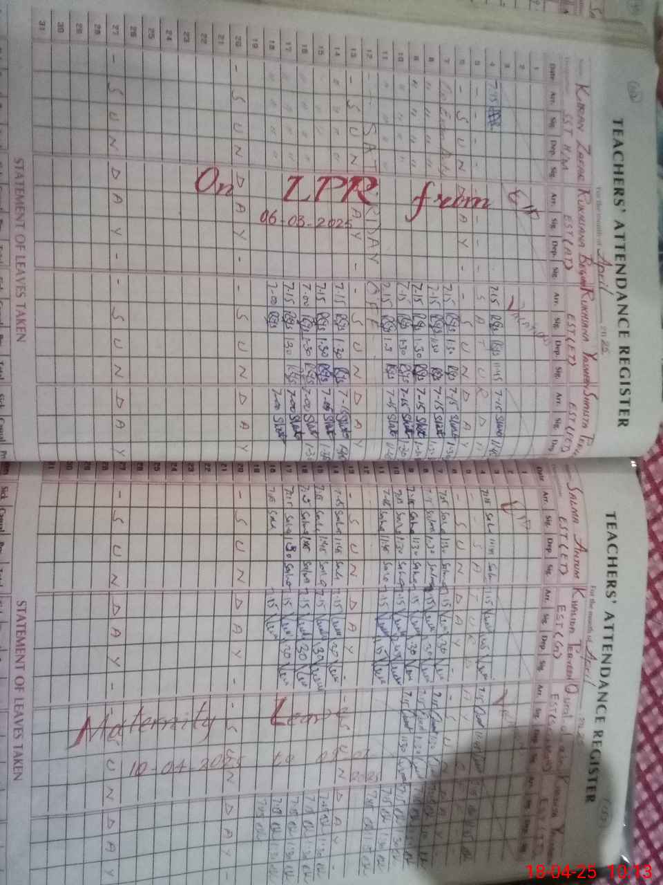 | Leave | Duty | Absent | Maternity | Medical | Ex- Pak |