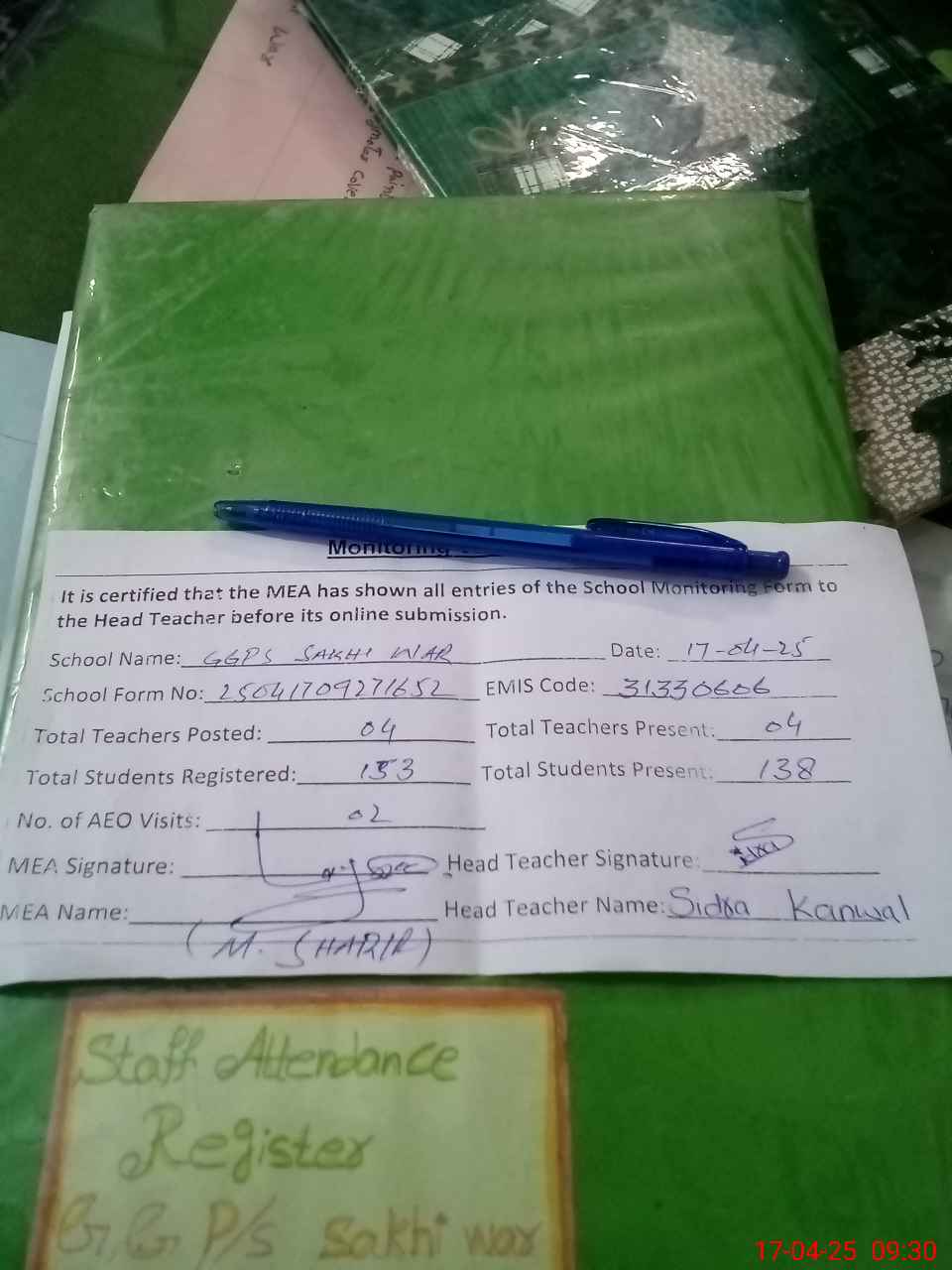 | EMIS Code: 31330606 | Name of School: GGPS SAKHI WAR | |||