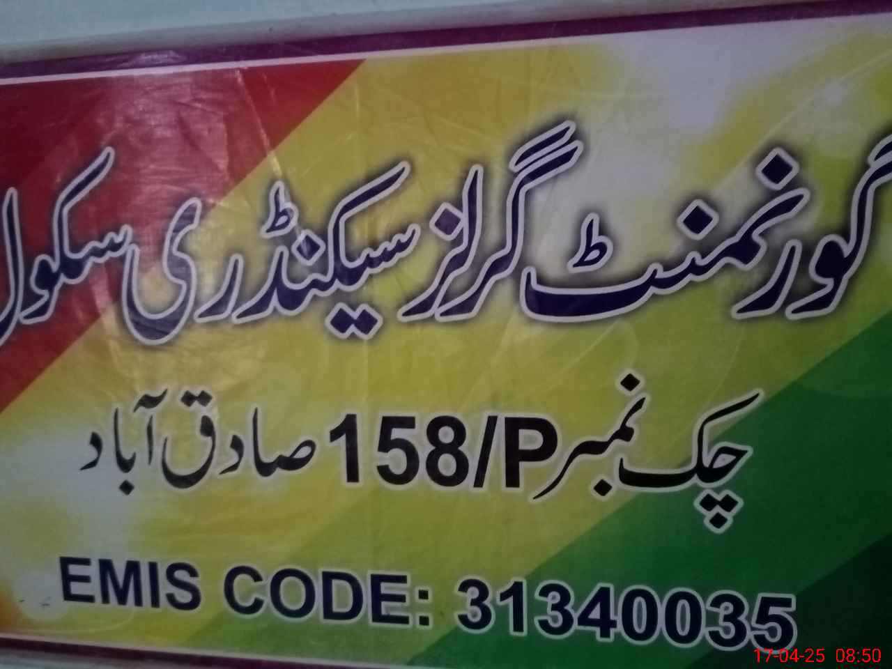 | EMIS Code: 31340035 | Name of School: GGHS CHAK NO. 158/P | |||