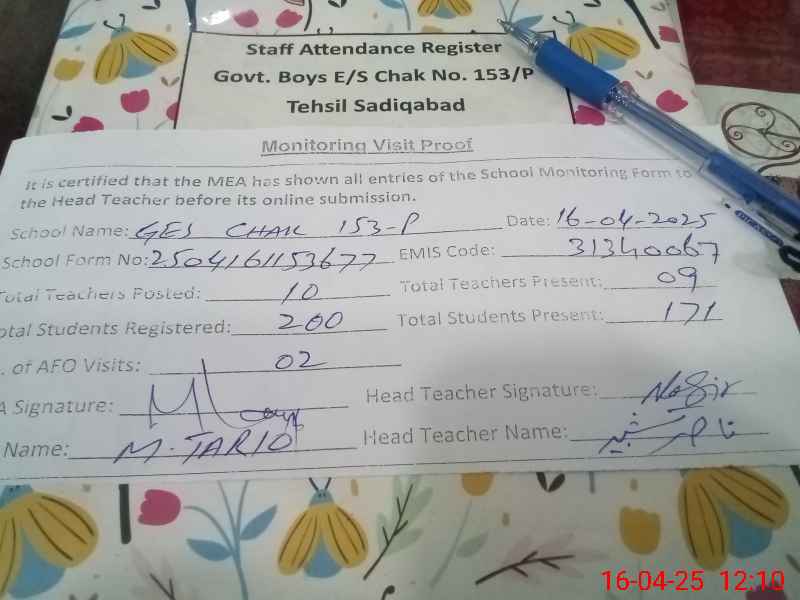 | EMIS Code: 31340067 | Name of School: GES CHAK NO 153/P | |||