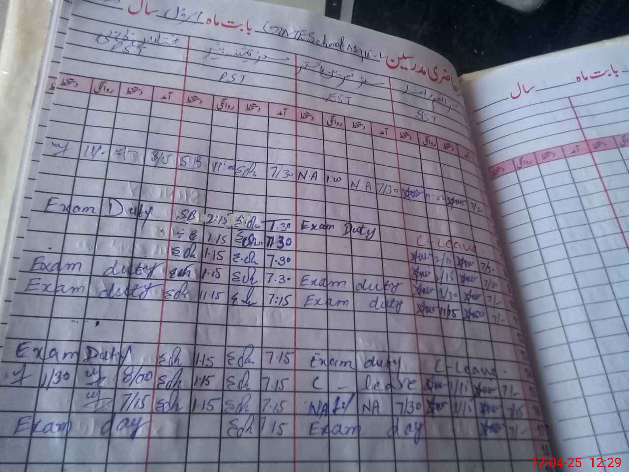 | 36**** | Ba**** Ah**** | PST | Regular | 1 | 2 | 0 | 0 | 0 | 0 | 0 | 0 | 1 | Exam Duty |
