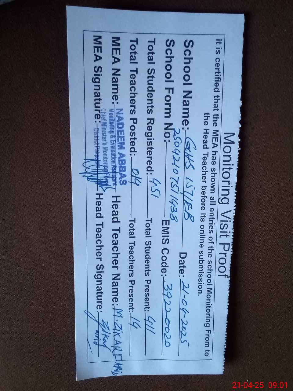 | EMIS Code: 39220020 | Name of School: GHS 157/EB | |||