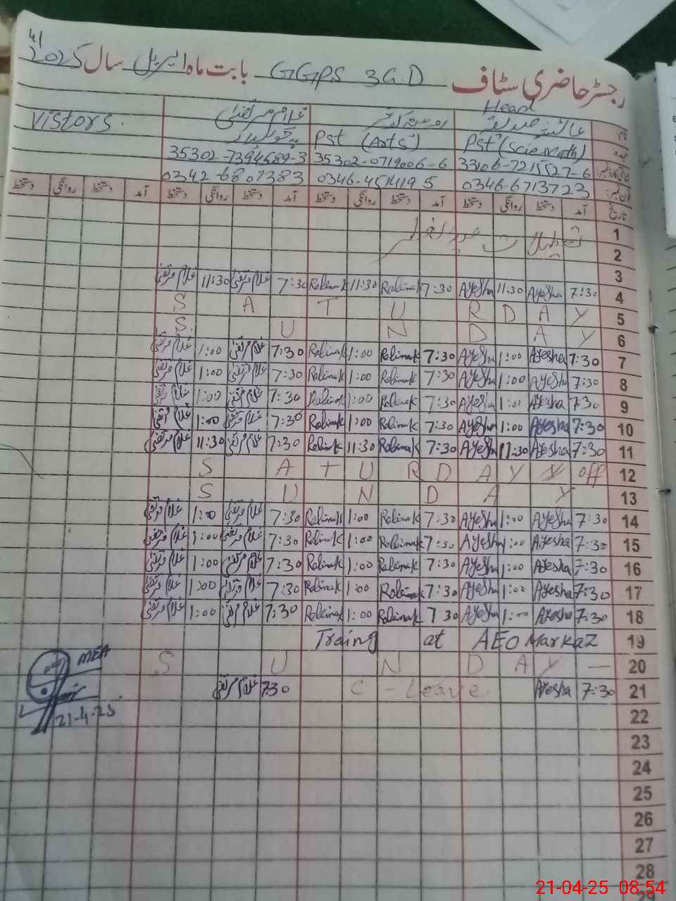 | Name: AY**** SA**** Designation: (School Headmaster's/Headmistress's) PST Phone/Cell Number: 03**** |